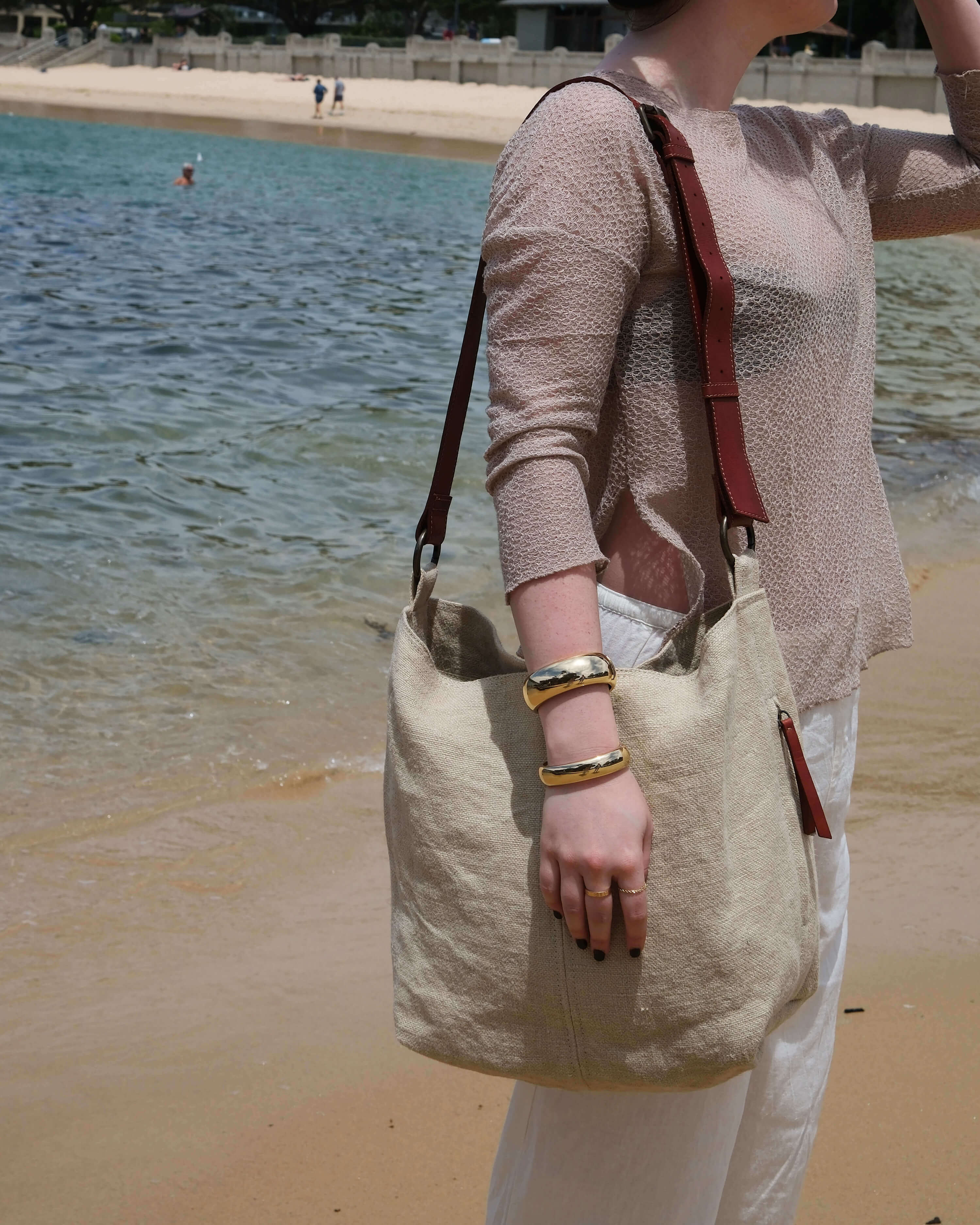 The Baby Jute is a crossbody bag made from jute. This effortlessly cool bag pairs organic construction with a casual, slouchy profile.