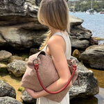 The Sunday Slouchy is a shoulder bag made from jute with a leather handle. This bag embraces relaxed style through its slouchy silhouette, neutral tones and organic fabrication.