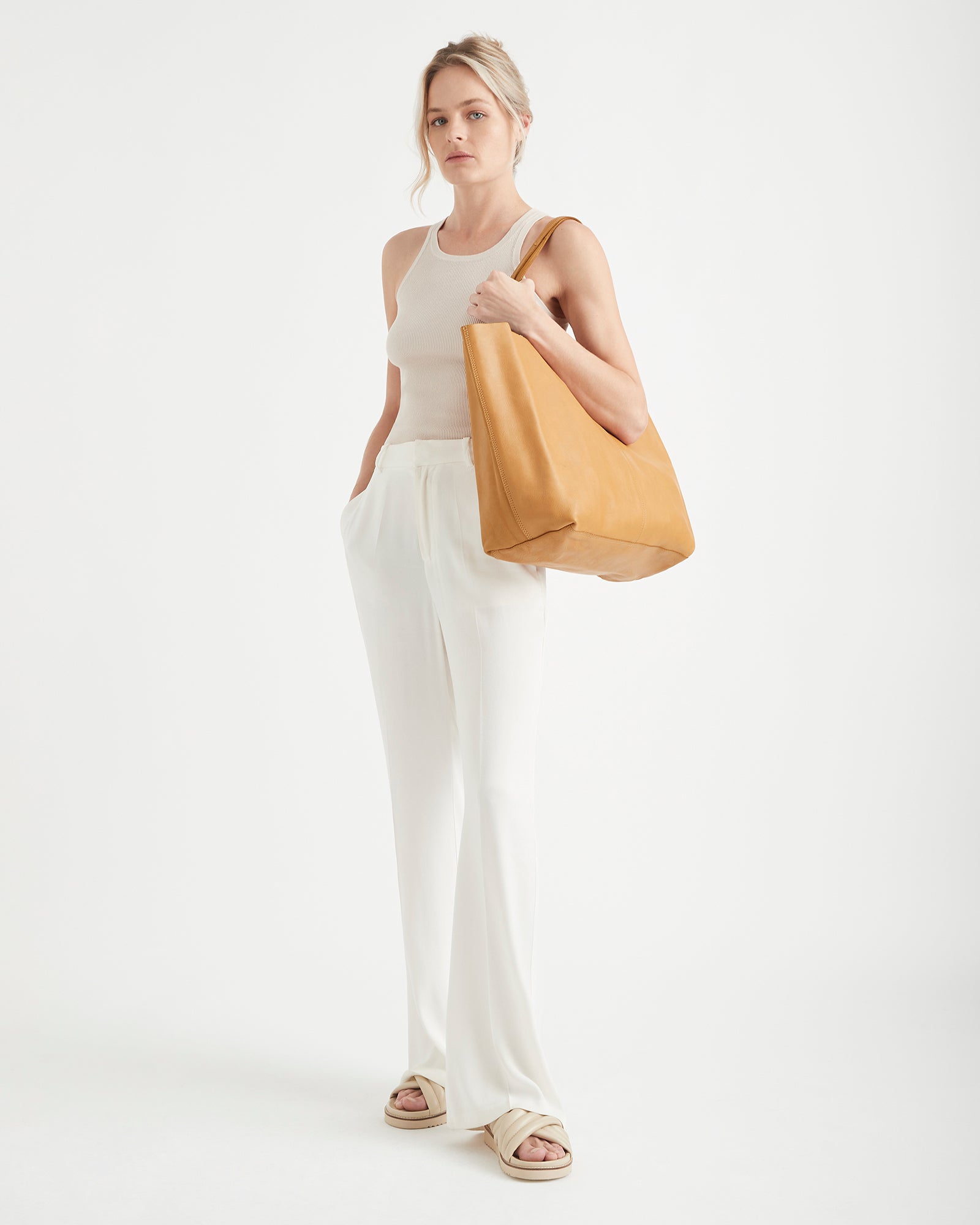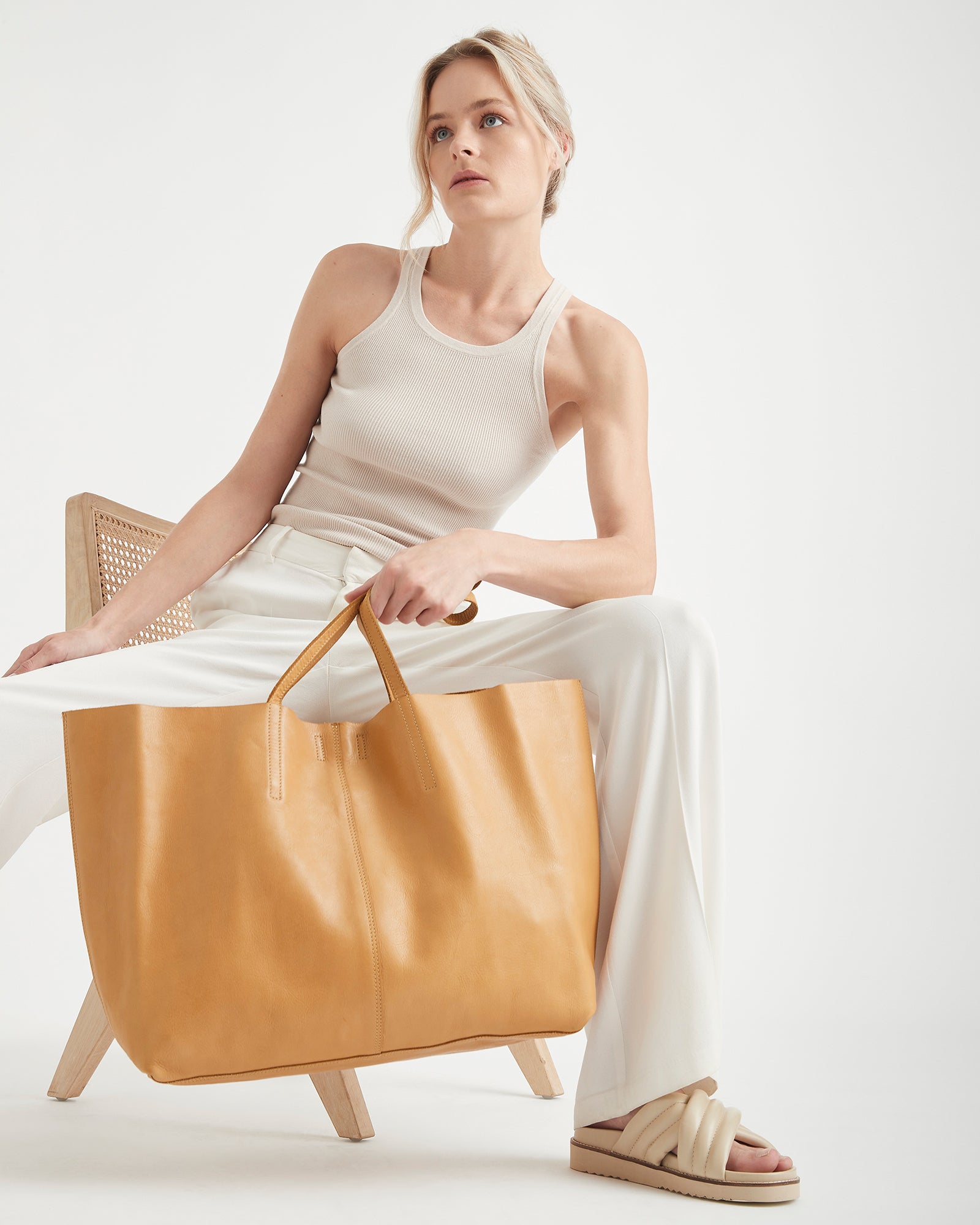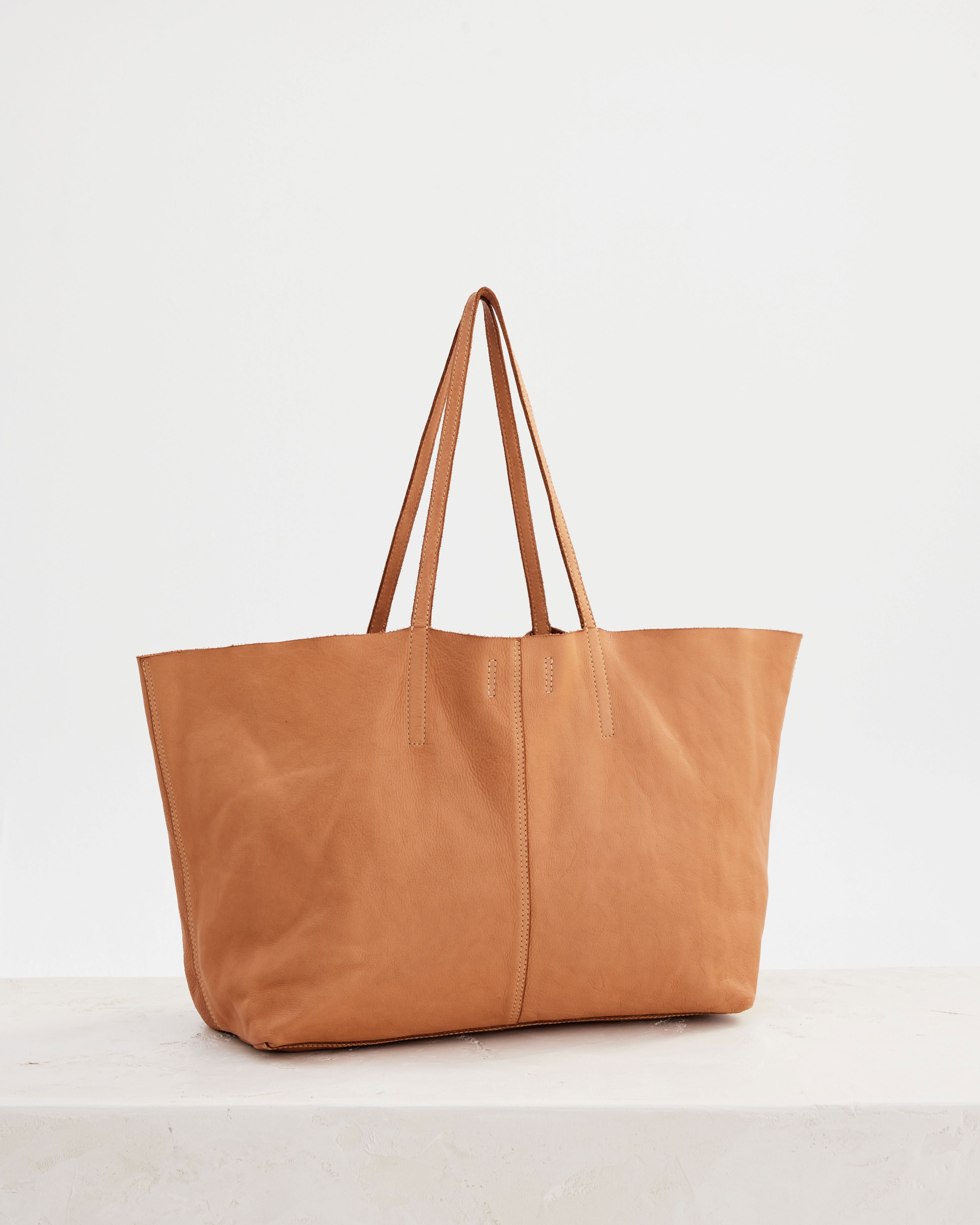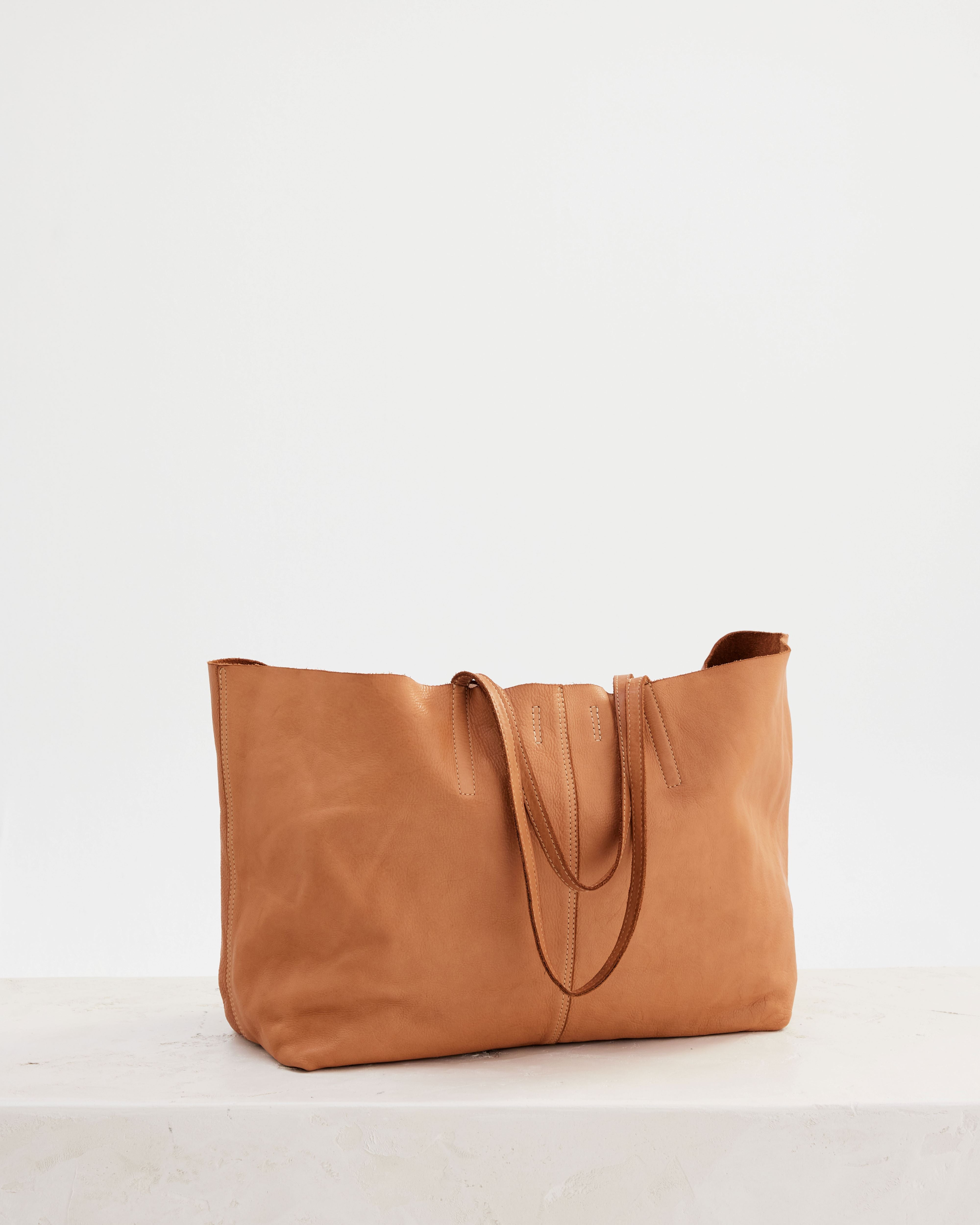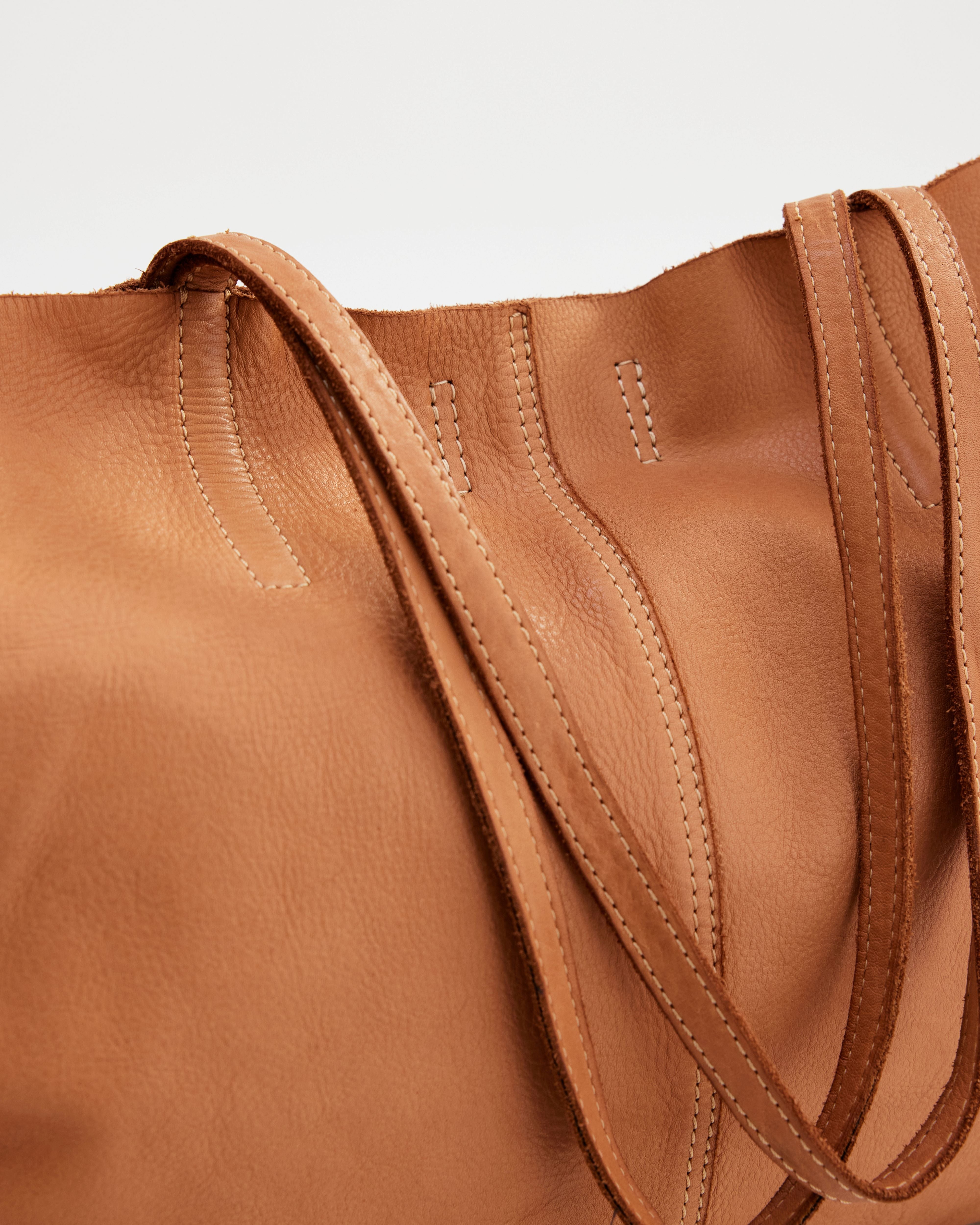 The Unlined Tote is a shoulder bag made from washed leather. Our large sized classic tote is unlined with a generously spaced interior. The sides of the bag can be folded in for a more compact look.