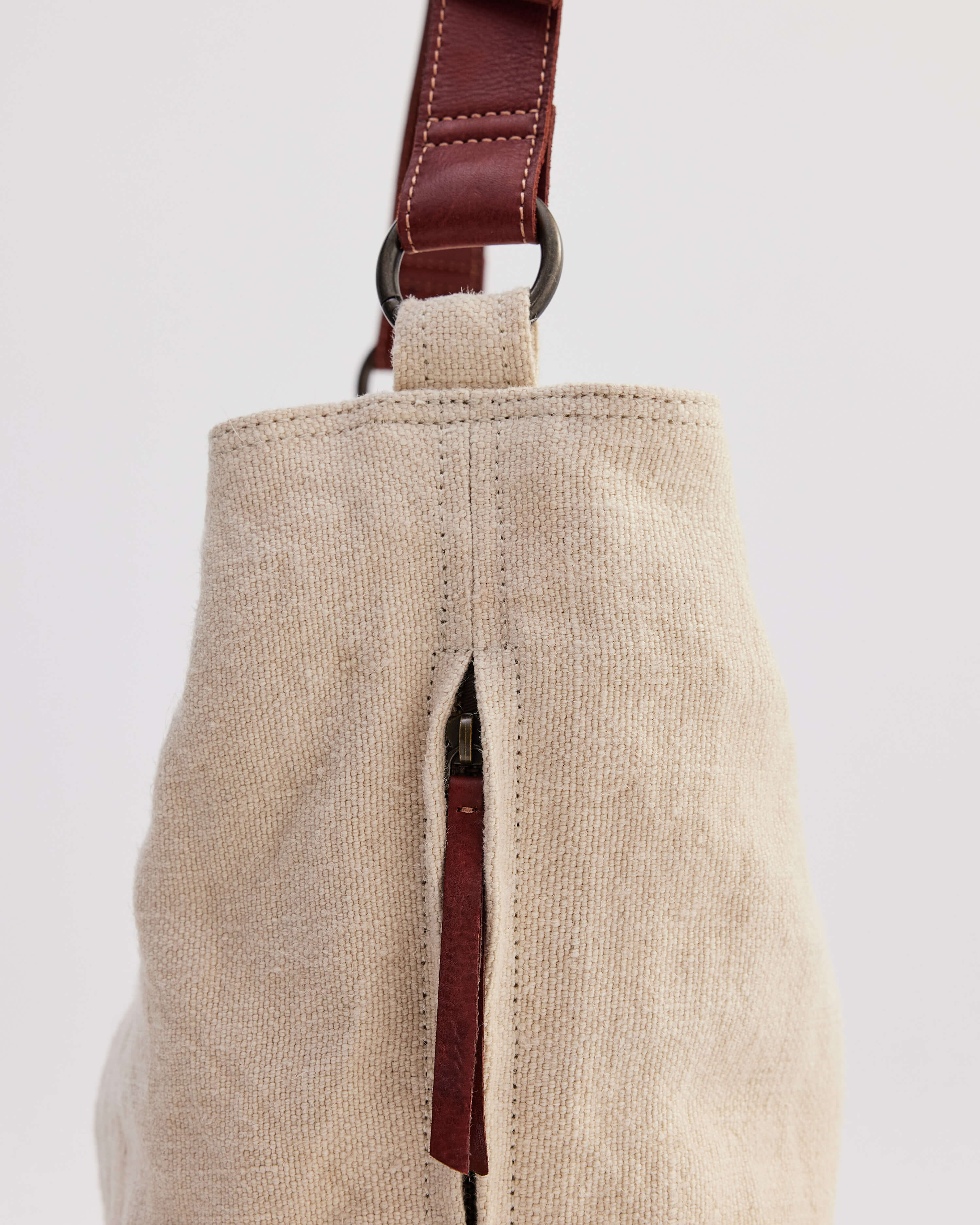The Baby Jute is a crossbody bag made from jute. This effortlessly cool bag pairs organic construction with a casual, slouchy profile.