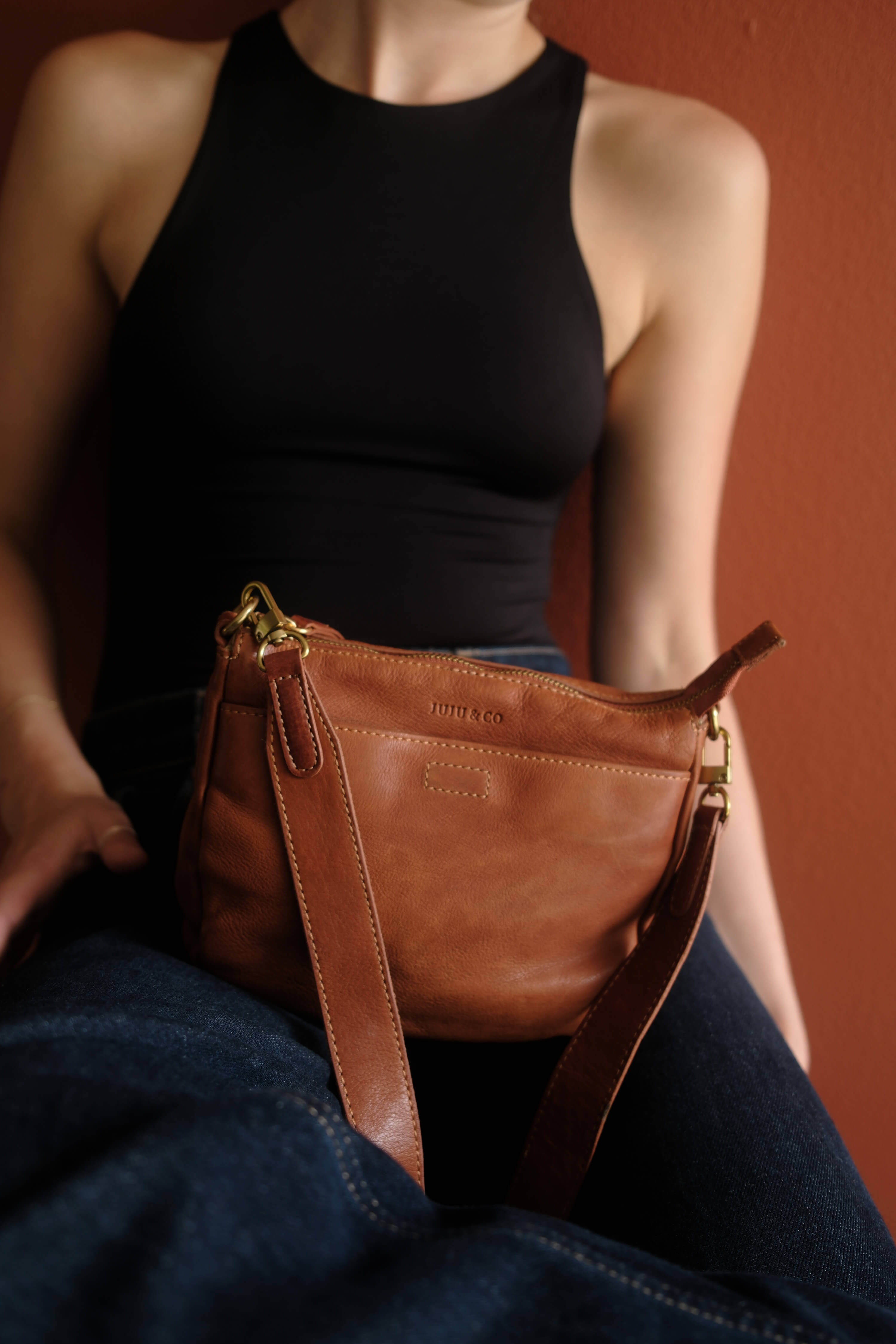 The Frida is a crossbody bag made from tumbled leather. With gold toned hardware and a wide base to fit your daily essentials, Frida is our pick for elevated everyday wear.