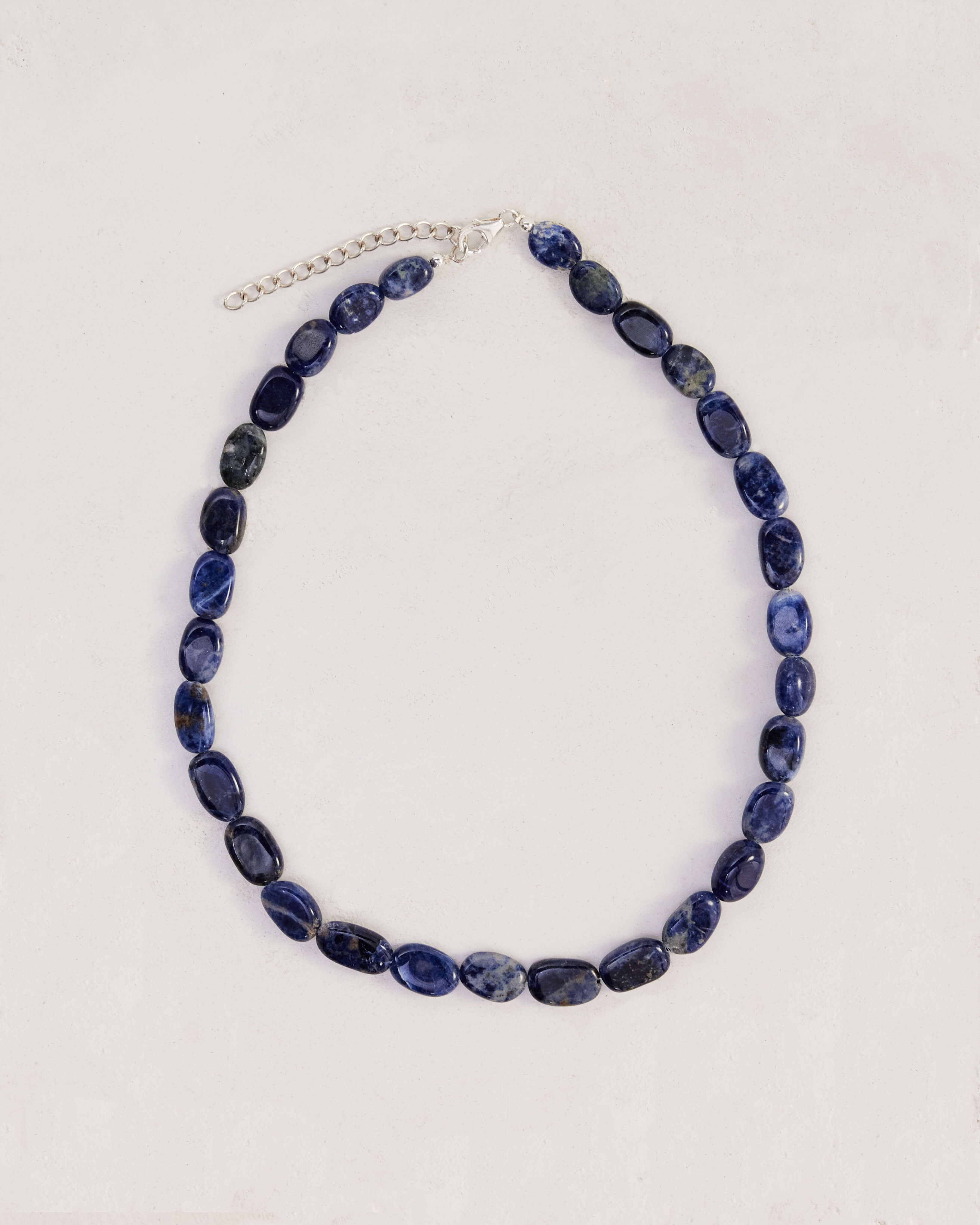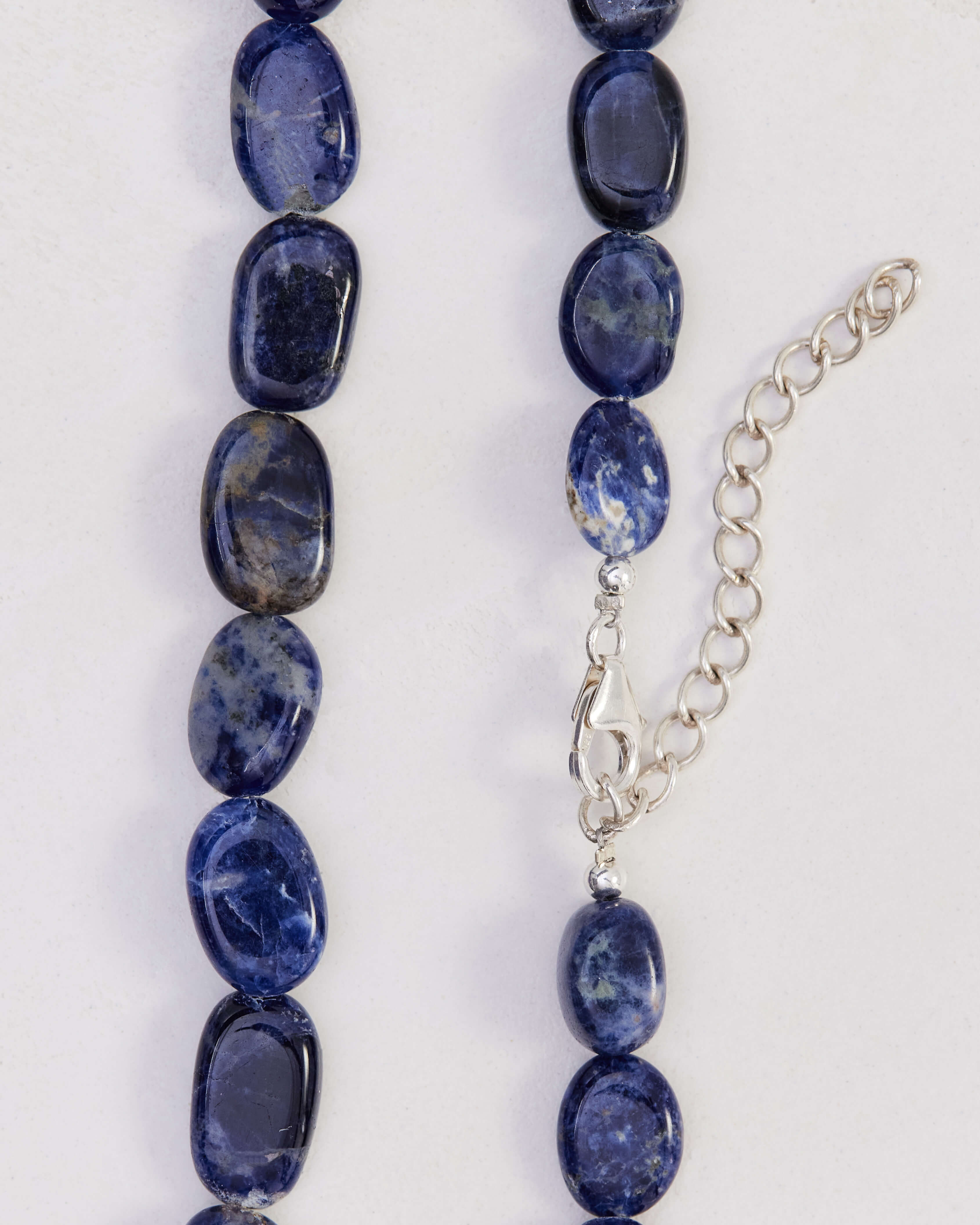 Sodalite Crystal oval beads with a sterling silver adjustable chain extender and clasp.