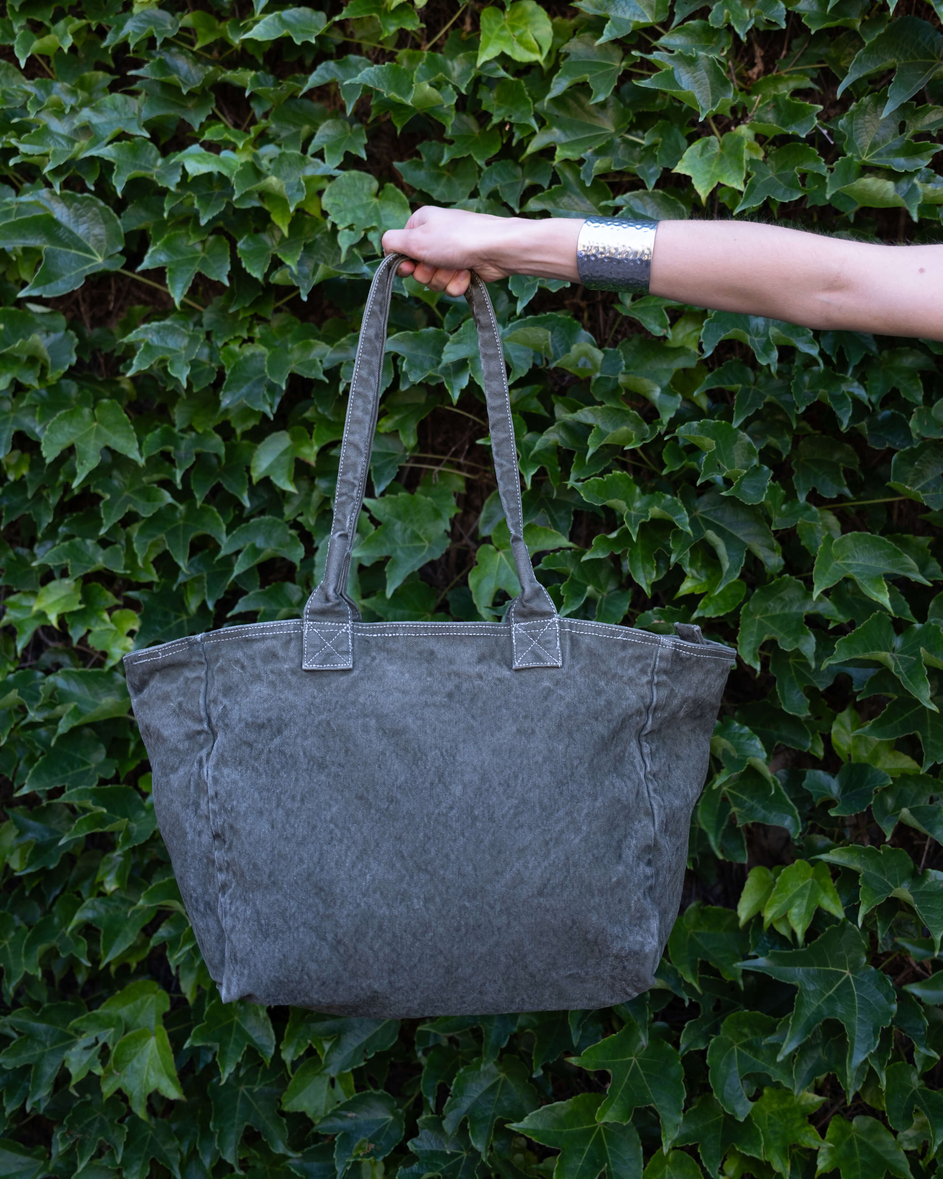 The Market Tote is a large capacity shopper bag. Made from heavy stoned-washed canvas dyed in three natural muted hues, this shopper is a versatile and easy everyday bag.