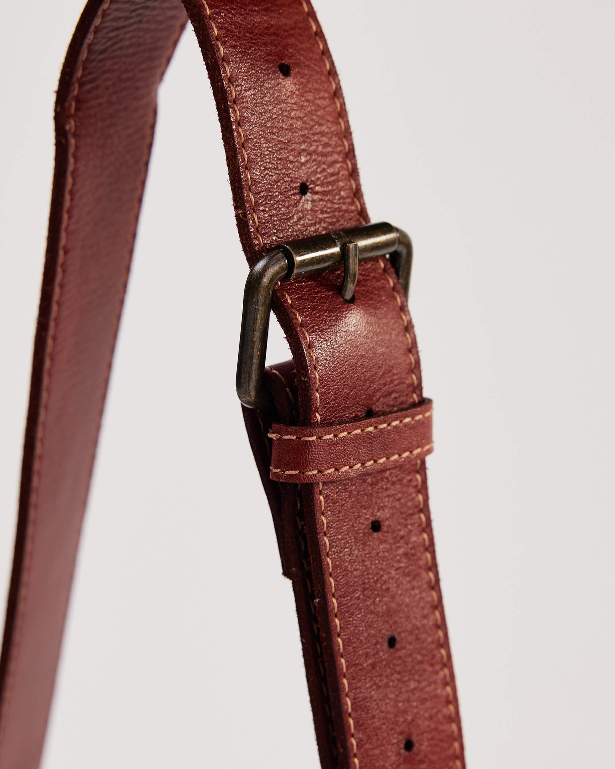 - Adjustable and detachable double-faced leather crossbody strap with contrast stitching