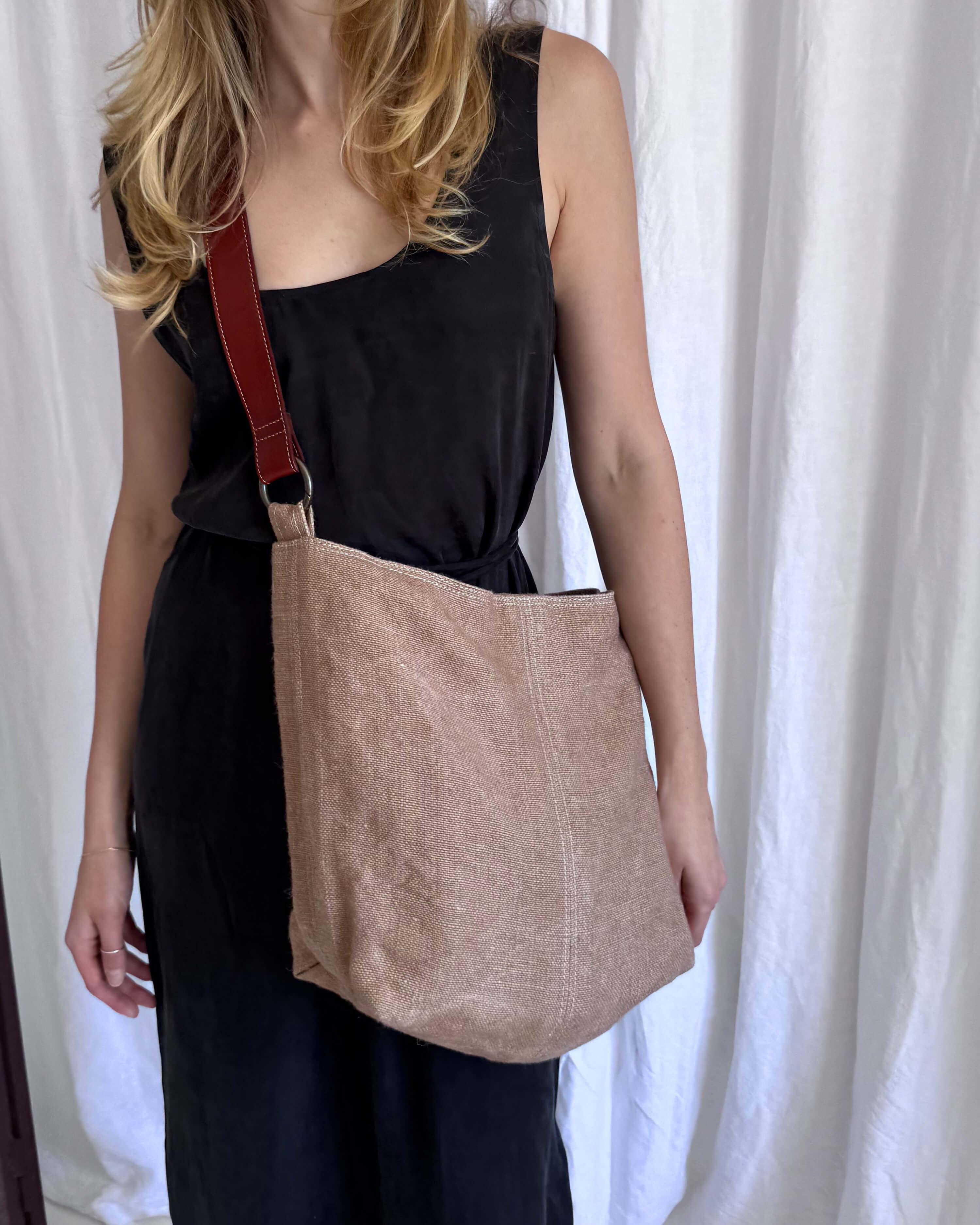 The Baby Jute is a crossbody bag made from jute. This effortlessly cool bag pairs organic construction with a casual, slouchy profile.