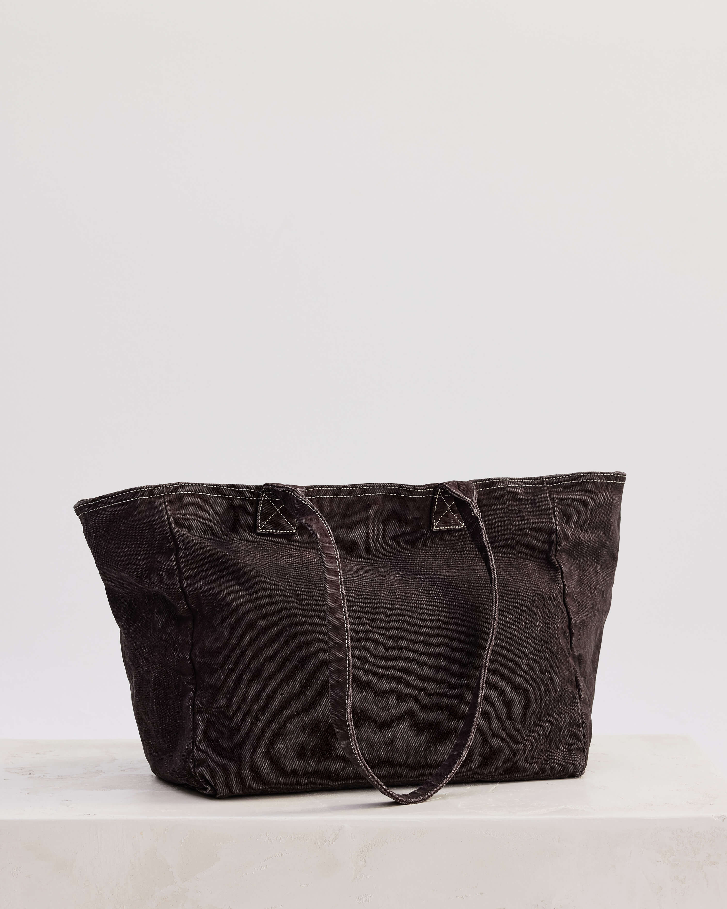 The Market Tote is a large capacity shopper bag. Made from heavy stoned-washed canvas dyed in three natural muted hues, this shopper is a versatile and easy everyday bag.